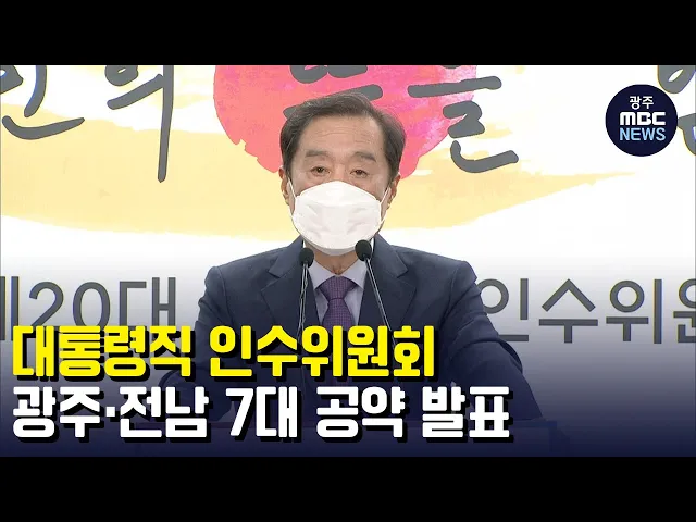 ** 민주당 광주시장 경선에 승리한 강기정 후보는 변화와 혁신을 요구하는 민심을 읽었다며 새로운 시장으로 당선돼 광주 신경제 지도를 완성하겠다고 강조했습니다. ** 대통령직 인수위원회가 광주전남의 7대 발전 공약을 발표하고 기회발전특구 조성을 지역균형발전을 위한 청사진으로 제시했습니다. ** 목포지역 민주당 ...