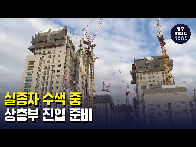 (앵커) 광주 화정동 현대아이파트 붕괴 관련 소식부터 알아보겠습니다. 사고가 발생한 지 9일째지만 아직 남은 실종자들의 구조 소식은 들리지 않고 있습니다. 안전상의 문제로 건물 상층부에 진입이 어렵기 때문인데요. 현장 연결해보겠습니다. 이다현 기자, 수색작업이 어떻게 진행중입니까? (기자) 네 아직 실종자 5명을...
