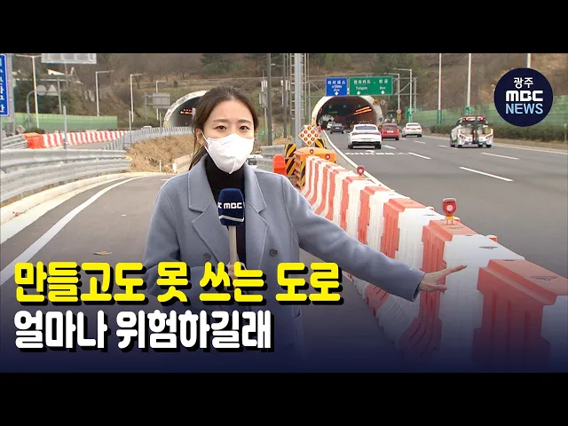 (앵커)수십억 예산을 투입해서 다 만들어놓고도사용하지 못하는 도로가 있습니다.바로 광주 제2순환도로 지산나들목 진출로입니다.애초에 사고 위험이 클 수밖에 없게 만들어졌다고 하는데,도대체 얼마나 위험하다는 건지 이다현 기자가 취재했습니다. (기자)지금 제가 서있는 이곳은 광주 제2순환도로 지산나들목에 새로 ...