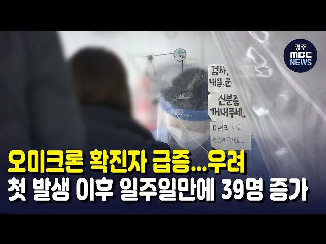 (앵커)광주 오미크론 바이러스 확산 속도가 심상치 않습니다.첫 환자가 발생한지 일주일만에 백명 가량이 오미크론 확진을 받았거나 의심 환자로 분류됐습니다.전파 속도가 델타변이보다 빠르다는 사실이광주에서도 확인되고 있습니다.송정근 기자입니다.(기자)광주에서 첫 오미크론 환자가 확인된 건 지난 21일.이후 일주...
