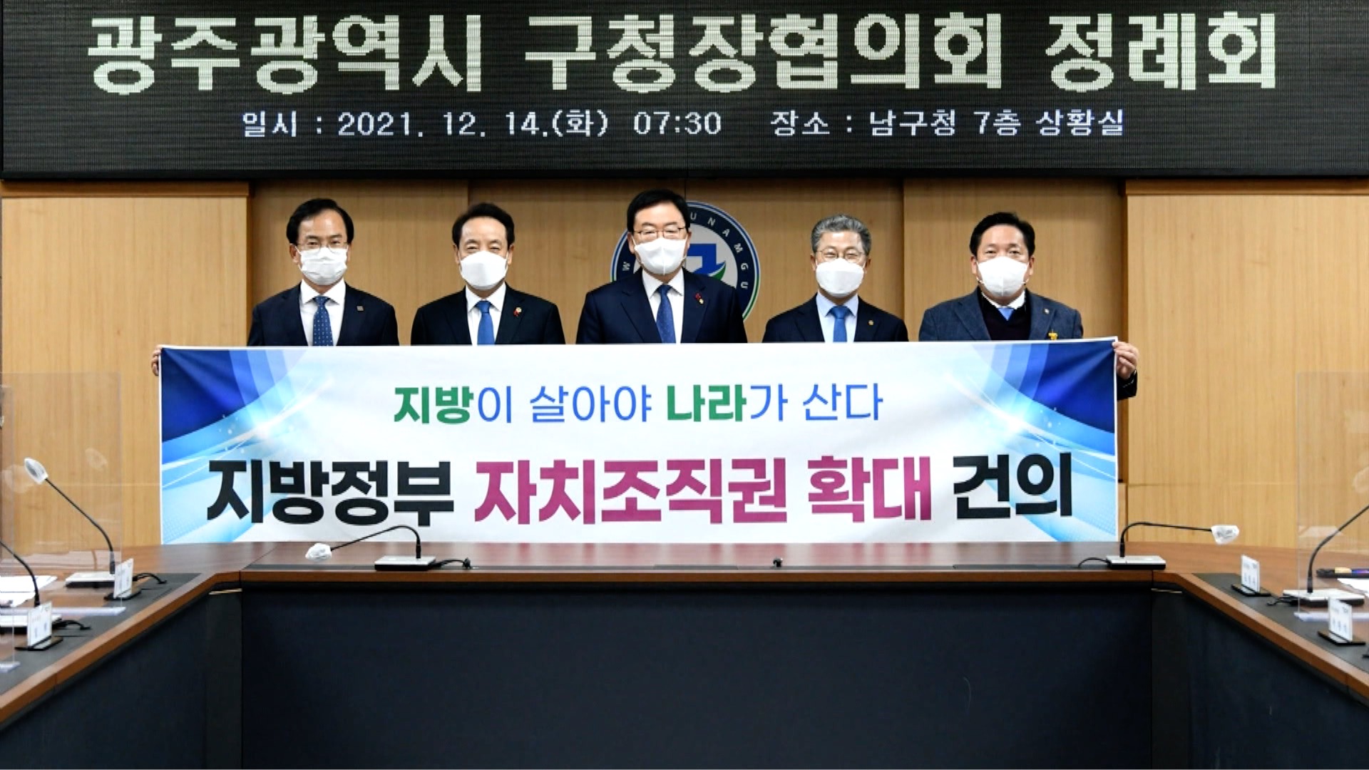 광주지역 구청장들이자치 조직권을 확대하기 위해자치구 국 단위 설치 기준을 개선해달라고 정부에 요구했습니다.광주 구청장 협의회는 정부에 전달한 건의문을 통해특별시와 광역시의 자치구 행정 기능이 유사한데도광역시 자치구의 설치를 제한한 것은지방자치법 개정 취지에 어긋난다고 지적했습니다.구청장 협의회는지...