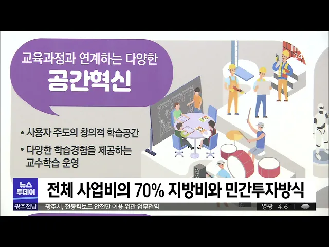 ◀ANC▶ 전남의 학교들이 교육과 생태, 지역 공동체가 숨쉬는 공간으로 새롭게 바뀝니다. 이른바 '그린스마트 미래학교'인데, 재원 마련이 고민입니다. 김 윤 기자가 보도합니다. ◀END▶ 지난 1963년 목포 원도심에 자리잡은 동초등학교입니다. 건립된지 50년이 지나면서 건물외관과 내부는 대부분 고쳐서 사용하고 있습...