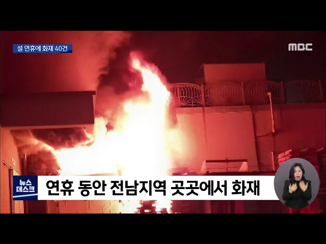 ◀ANC▶ 계속된 건조한 날씨로 설 연휴동안 전남 곳곳에서 화재가 발생했습니다. 설 연휴기간 사건사고 소식, 김안수 기자가 정리했습니다. ◀END▶ 논바닥이 새카맣게 그을려 있습니다. 영암의 한 논에서 불이 난 것은 어제 오후 4시 15분쯤. 농경지 5300제곱미터가 탄 화재현장에선 83살 A씨가 숨진 채 발견됐습니다. S...