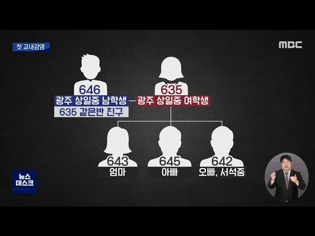 (앵커) 광주에서는 중학생들 중에 코로나에 감염된 학생들이 나와 비상이 걸렸습니다. 같은 반 친구가 감염되는 이른바 교내전파도 광주전남에서는 처음으로 확인됐습니다. 나주 혁신도시를 중심으로 한 확산세도 이어지고 있습니다. 김철원 기자입니다. (기자) 광주 서석중학교 학생과 교직원들이 코로나 검사를 받고 있습...