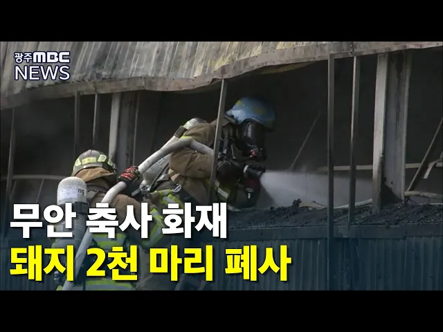 ◀ANC▶ 기온이 뚝 떨어지면서 난방기구 사용이 늘고 있죠. 화재 예방에 신경써야 할 시깁니다. 오늘 무안에 있는 대형 돼지 사육장에서 큰불이 나 돼지 2천마리가 폐사했습니다. 김안수 기자가 취재했습니다. ◀END▶ 들판 한 가운데에서 새까만 연기 기둥이 솟구쳐 오릅니다. 소방헬기가 물을 퍼붓어 보지만 연기는 쉽...