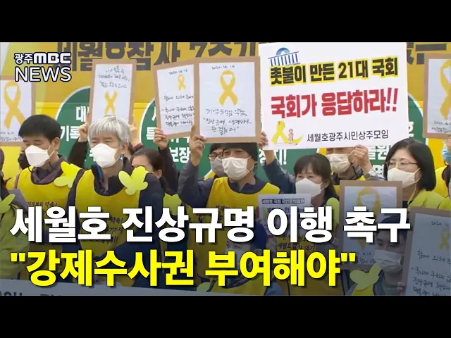◀ANC▶ 세월호 유가족과 시민상주모임이 성역없는 조사로 세월호 참사의 진상을 규명하라고 촉구했습니다. ◀INT▶ 추말숙/세월호 시민상주 "국회의원들은 21대 총선에서 국민과 세월호 피해자에게 했던 약속을 이행해야 합니다. 대통령은 지난 대선과 집권 이후 국민과 세월호 피해자에게 약속했던 진상규명을 이행해야...