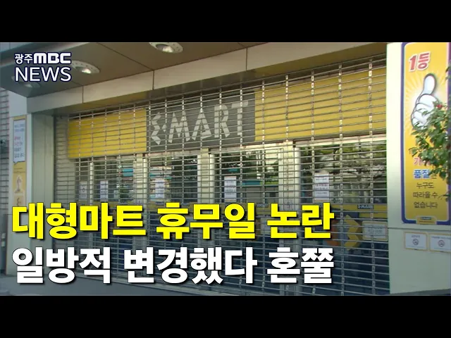 ◀ANC▶ 여수시가 대형마트의 의무 휴일을 일방적으로 변경했다가 마트 노동자들의 뭇매를 맞았습니다. 휴일 변경 결정은 철회됐지만, 최소한의 의견 수렴조차 없었다며 지역 소상공인들까지 분통을 터트리고 있습니다. 문형철 기자입니다. ◀VCR▶ 최근 여수시 홈페이지에 올라온 공고문입니다. [C/G 1] 10월 둘째 주 일...