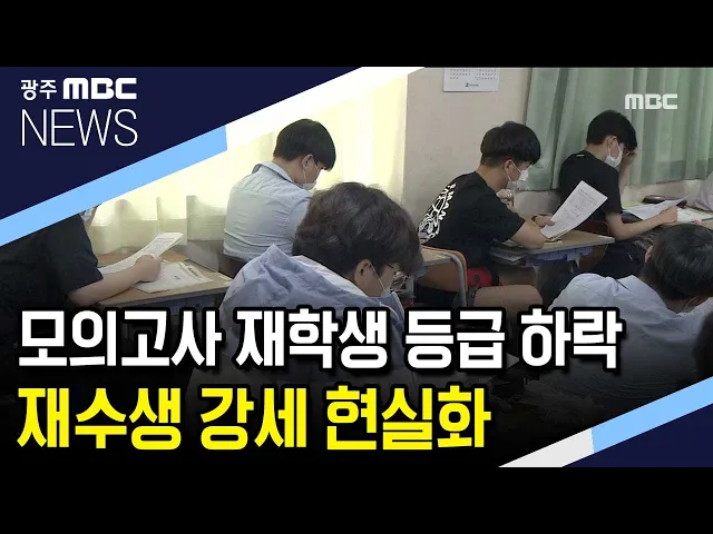 (앵커) 지난달 실시된 대입 모의고사 성적이 학생들에게 개별적으로 통보됐습니다. 재수생이 참여하지 않았던 4월,5월 모의고사에 비해 고3 학생들의 등급이 떨어졌습니다// 우려했던 재수생 강세가 현실로 나타나 고3 교실에 비상이 걸렸습니다. 이재원 기잡니다. (기자) 수능 준비가 한창인 광주의 한 고등학교. 지난 달 ...