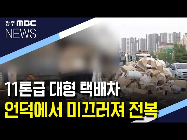 ◀ANC▶ 대형 택배 운송 차량이 내리막길에서 40여미터를 미끄러져 전복됐습니다. 큰 인명 피해는 없었지만, 사고 당시 영상을 보면 아찔합니다. 양현승 기자가 취재했습니다. ◀END▶ ◀VCR▶ 대형 화물차가 내리막길을 따라 빠른 속도로 흘러내립니다. 도로까지 내려온 뒤 무게를 이기지 못하고 전복됩니다. 도로를 달...