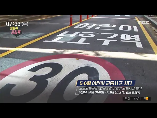 (타이틀 후, BGM 있습니다) ===(N.A)================================= (생활 1.) 5월과 6월에는 어린이 교통사고를 주의해야겠습니다. 도로교통공단이 최근 3년 간 광주 지역에서 발생한 어린이 교통사고를 분석한 결과, 5월에 발생한 사고 건수가 전체의 10.3%를 차지했고, 6월은 9.8%로 뒤를 이었는데요. 야외 활동이 ...