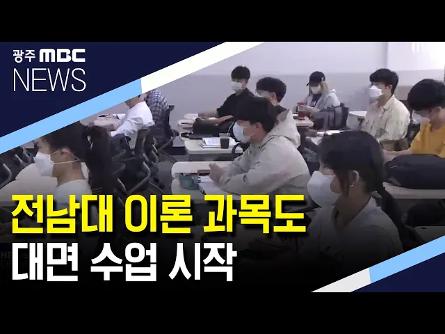 (앵커) 전남대학교가 오늘부터 일부 이론 수업도 대면 강의를 시작했습니다. 대학이 정상을 찾아가는 것은 반가운 소식이지만 학생들 사이에선 찬반이 갈립니다. 이재원 기자가 전합니다. (기자) 마스크를 눌러쓴 학생들이 하나 둘씩 건물 입구로 모여들고, 발열 체크와 함께 신원 확인이 실시됩니다. ..학생증 찍어주세요~...