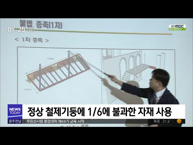 (앵커) 클럽 구조물 붕괴사고를 수사해온 경찰은 구조물을 불법으로 증축한 게 사고의 직접적인 원인이라고 잠정 결론지었습니다. 구조물이 얼마나 허술하게 만들어졌길래, 경찰은 그동안 무너지지 않은게 이상할 정도였다고 말했습니다. 김철원 기자입니다. (기자) 지난달 27일 새벽 광주 모 클럽의 복층 구조물이 무너지...
