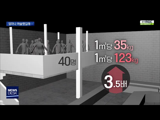 (앵커) 클럽 구조물 붕괴사고를 수사해온 경찰은 구조물을 불법으로 증축한 게 사고의 직접적인 원인이라고 잠정 결론지었습니다. 구조물이 얼마나 허술하게 만들어졌길래, 경찰은 그동안 무너지지 않은게 이상할 정도였다고 말했습니다. 김철원 기자입니다. (기자) 지난달 27일 새벽 광주 모 클럽의 복층 구조물이 무너지...