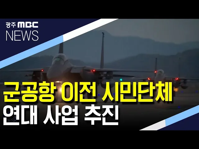 (앵커) 군공항으로 소음 피해를 입고 있는 광주와 대구, 수원의 시민단체들이 군공항 이전을 위해 한 목소리를 내기로 했습니다. 이전 후보지 선정에 소극적인 자세로 일관하고 있는 국방부를 압박하기로 했습니다. 송정근 기자가 보도합니다. (앵커) (현장음) "군 공항 이전 파이팅" 광주와 대구, 수원의 시민단체가 군 공...