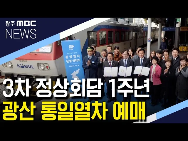 광주 광산구가 광주 송정역에서 파주 도라산역을 왕복하는 제2회 광산 통일열차 탑승권 판매를 시작합니다 기차는 평양에서 열린 제3차 남북정상회담 1주년을 기념해 다음달 20일 광주 송정역을 출발할 예정으로 예매는 오는 29일 오전 9시부터 광산문예회관 홈페이지에서 선착순으로 할 수 있습니다. 지난 4.27 판문점 선...