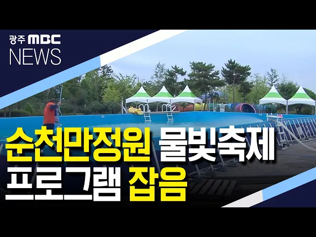◀ANC▶ 요즘 순천만 국가정원에서 '물빛축제'가 한창인데요 소화전 물을 끌어다 어린이 풀장을 운영해 물의를 빚었습니다. 빛을 이용한 쇼도 반응이 미지근합니다. 이래저래 잡음이 나오고 있습니다. 조희원 기자가 취재했습니다. ◀VCR▶ 순천만 국가정원 물빛축제 기간, 매일 저녁마다 진행되는 워터라이팅 쇼입니다. ...