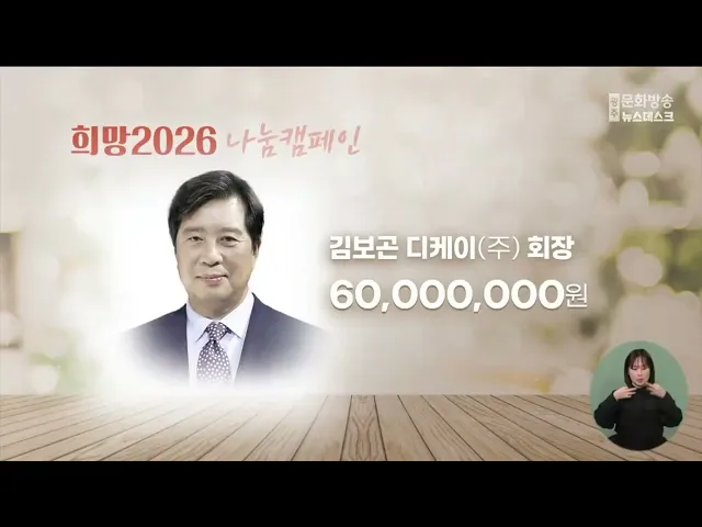 다음은 '희망 2026 나눔 캠페인' 에 성금을 보내주신 분들입니다.이종희 (주)에코전력 대표이사가20,000,000 원을 보내주셨고김보곤 디케이(주) 회장이60,000,000원을 보내주셨습니다.어려운 이웃돕기에 함께해주셔서 감사합니다.