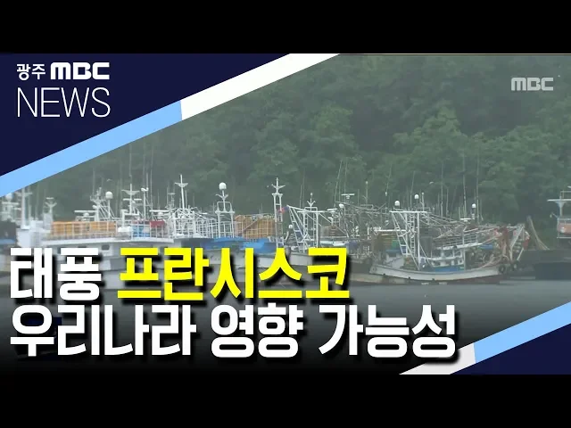 제8호 태풍 프란시스코가 우리나라에 영향을 미칠 수 있다는 전망이 나왔습니다. 광주지방기상청에 따르면 괌 북동쪽 해상에선 발생한 태풍 프란시스코는 시속 30㎞ 안팎으로 빠르게 올라오고 있고 현재 경로로 보면 오는 6일 밤 남해안에 상륙해 서해안으로 진출할 것으로 예상됩니다. 기상청은 "이번 태풍은 북태평양고기...