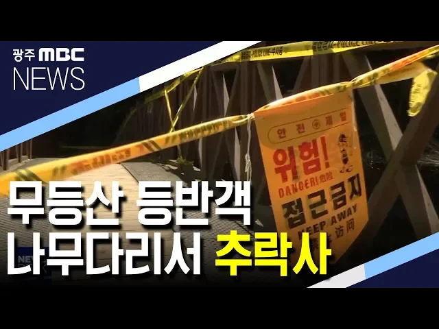 (앵커) 무등산 계곡 나무다리에서 산책을 하던 60대 여성이 추락해 숨졌습니다. 경찰은 다리 난간이 부식돼 사고가 난 것으로 보고 관리에 문제가 없었는지 조사하고 있습니다. 우종훈 기자가 취재했습니다. (기자) 광주시 동구 무등산 자락의 한 계곡에서 69살 한 모 씨가 의식을 잃은 채 발견된 건 어제(31) 오후 6시 30...