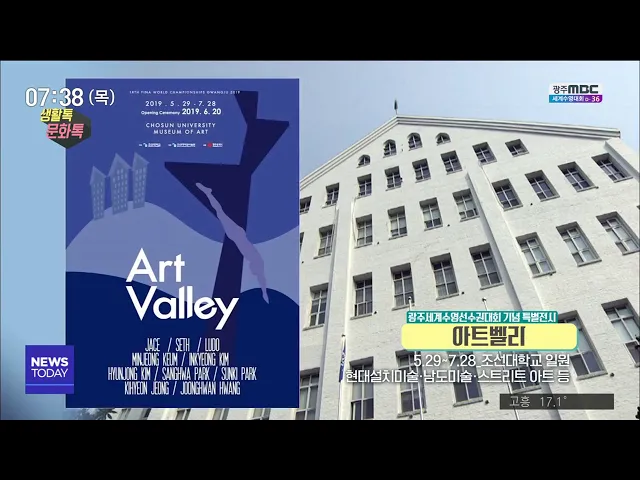 오늘의 주요뉴스... 세계수영선수권대회를 앞두고 동아수영대회가 광주에서 개막했습니다. 선수들은 경기장 시설에 만족감을 나타냈고, 한국 신기록도 나왔습니다. ------------------------------------------ 현충일 징검다리 연휴 동안 광주와 전남에 최고 150mm의 많은 비와 강한 바람이 예상됩니다. -----------------...