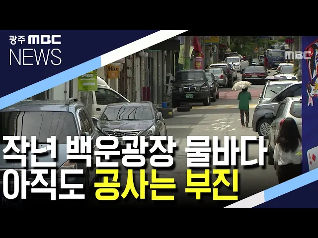 (앵커) 지난해 여름 집중호우로 광주 백운광장 일대가 물바다로 변하면서 도시 기능이 마비됐습니다. 하수관로가 문제로 지적됐고, 당시 자치단체는 정비 계획을 밝혔는데 여름이 다가오는 지금까지 공사는 시작도 못했습니다. 우종훈 기자가 취재했습니다. (기자) 폭포수처럼 건물 지하로 빗물이 들어찹니다. 허벅지까지 ...