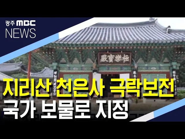 지리산 천은사의 극락보전이 국가지정문화재로 지정됐습니다. 문화재청은 전라남도 유형문화재인 구례 천은사 극락보전을 보물 2024호로 지정했다고 밝혔습니다. 18세기 말에 지어진 천은사 극락보전은 다포식 건축의 특성을 잘 보여줄 뿐 아니라 벽화의 단청도 보존 상태가 뛰어나고 예술적으로 가치있다는 평가를 받았습...