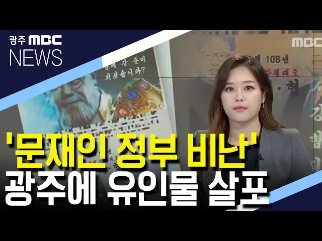 오늘(23) 오전 7시쯤, 광주시 서구 치평동 거리에 문재인 정부를 비난하는 유인물 150여장이 뿌려져 있는 것을 지나던 시민이 발견해 경찰에 신고했습니다. 유인물에는 '남조선 체제를 전복하자'는 제목으로 정부 정책을 비난하는 글과 문재인 대통령에 영화 속 악인을 합성한 사진이 실려 있습니다. 경찰은 유인물에 적힌 ...