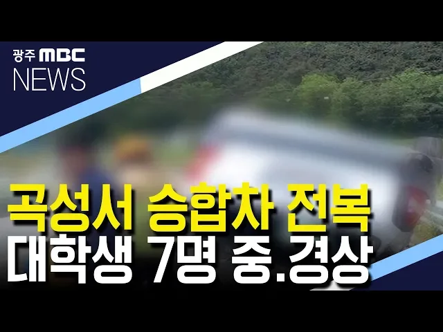 어제(21) 오전 11시 30분쯤, 곡성군 옥과면의 한 도로에서 21살 오 모 씨가 몰던 승합차가 뒤집어졌습니다. 이 사고로 차에 타고 있던 20살 박 모 씨가 크게 다쳐 병원으로 옮겨졌지만 의식이 없는 상태이고, 나머지 6명도 다쳐 병원에서 치료를 받고 있습니다. 경찰은 전남의 한 대학교 학생들이 실습을 마치고 돌아가다가...