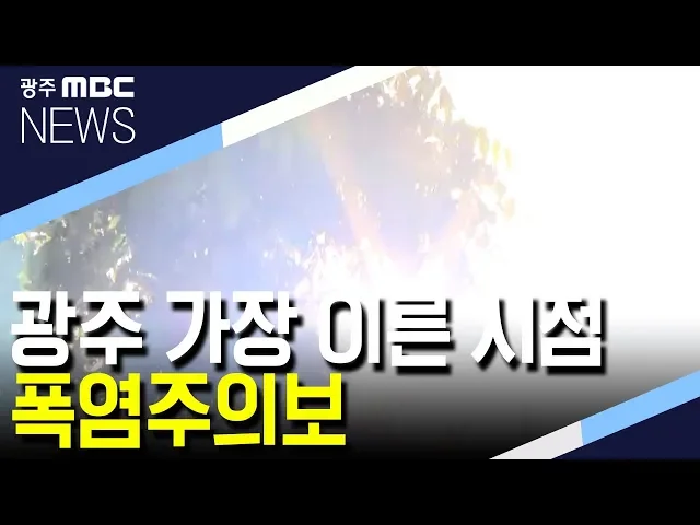 때이른 더위가 계속되는 가운데 오늘 광주에 역대 가장 일찍 폭염주의보가 내려졌습니다. 광주 지방기상청은 오늘 서구 풍암동이 낮기온이 33도를 넘어서자 오후 3시를 기해 폭염주의보를 내렸습니다. 폭염주의보는 낮 최고기온이 이틀 연속 33도를 넘을 것으로 예상될 때 발효되는 특보로, 지난 2008년 폭염특보 제도가 시...