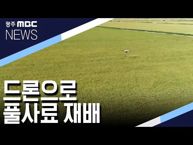 (앵커) 농업분야에서 드론의 쓰임새가 나날이 다양해지고 있습니다. 한우나 젖소가 먹는 풀사료를 드론으로 씨를 뿌려 재배한 결과 노동력 절감은 물론 고품질 사료 생산이 가능해졌습니다. 이계상 기자.. (기자) 벼 수확을 앞둔 논에서 농업용 드론이 정해진 길을 따라 날아다닙니다. 벼 포기 사이로 바람을 불어넣으며 풀...