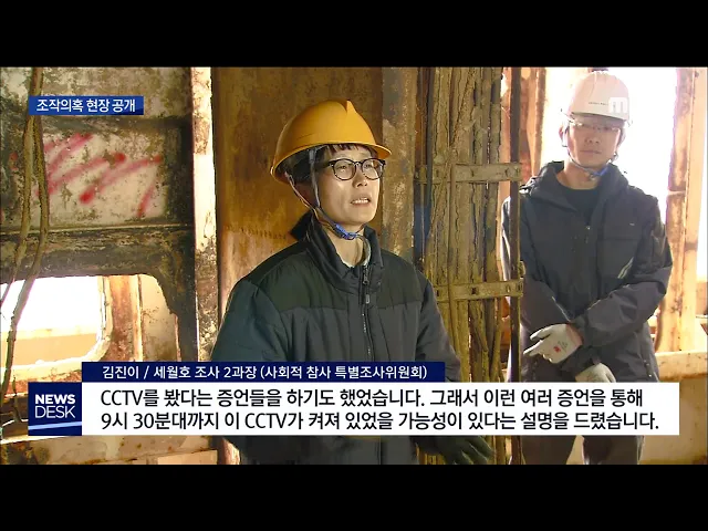 ◀ANC▶ 세월호 유가족들이 세월호 CCTV 영상저장장치가 놓여있던 안내데스크 현장을 공개했습니다. 사라진 당시 한 시간 영상이 진실 규명의 중요한 단초임을 강조했습니다. 문연철 기자가 취재했습니다. ◀END▶ ◀VCR▶ 세월호 3층 로비에 있었던 안내데스크, 복원된 모형을 통해 조작 논란이 일고 있는 선체 cctv 영...
