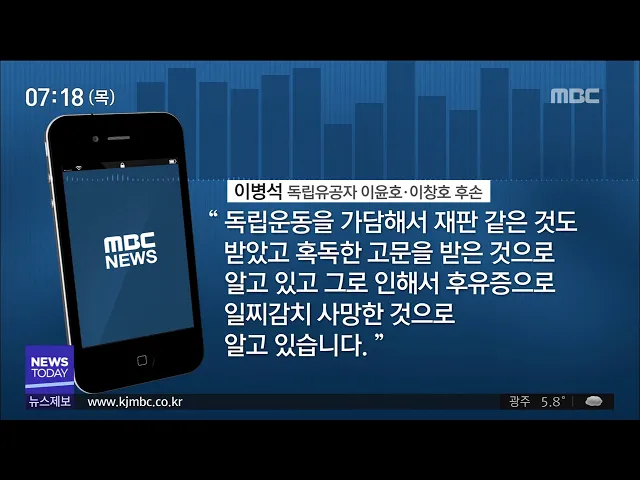 임시정부 독립군 자금을 전라도 주민들이 조직적으로 모금했다는 조선총독부 비밀 문건이 처음 공개됐습니다. =========================================== 자유한국당 국회의원들이 보 해체에 대한 여론을 듣겠다며 영산강 죽산보를 현장 방문했지만 노골적인 편들기로 갈등만 부추겼습니다. ===========================...