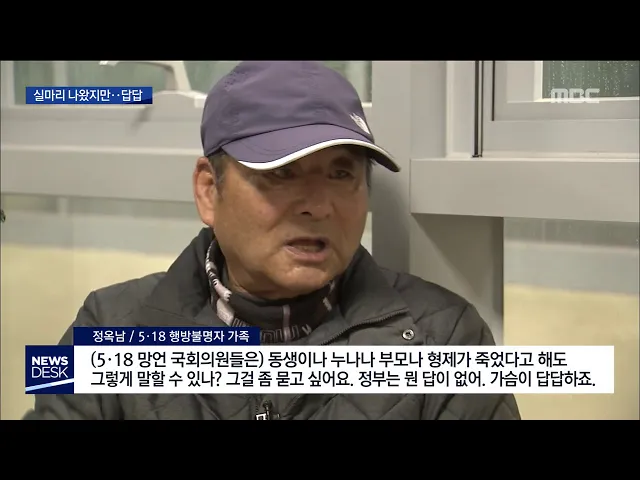 ◀ANC▶ 5.18 광주민주화운동 당시 군의 민간인 학살, 이로 인한 실종과 암매장은 지금껏 진상을 밝혀내지 못했는데요. 실마리가 되어줄 수도 있는 군 문서가 나왔지만 이를 조사할 5.18 진상조사위원회가 출범도 못하고 있어 피해자들의 답답함만 더해지고 있습니다. 김인정 기자입니다. ◀VCR▶ 5.18 당시 실종돼 묘역...