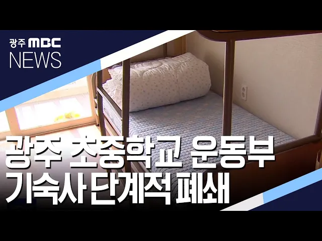 광주지역의 초등학교와 중학교 운동부 기숙사 7곳이 점진적으로 폐쇄됩니다. 광주시교육청은 광산 중학교과 북성중의 축구부, 문흥중의 배구부 등 중학교 운동부 기숙사 4곳을 점진적으로 운영을 중단시킬 계획입니다. 또, 축구부 기숙사를 운영해온 송정서초등학교와 월곡초, 하남중앙초등학교 등 세 곳은 이미 지난해 9월...