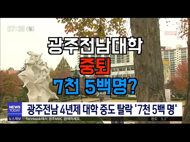 광주전남지역의 4년제 대학에서 중도에 학교를 그만둔 학생이 연간 7천5백 명가량 되는 것으로 나타났습니다. 광주전남 대학가에 따르면 종로학원 하늘교육이 '대학 알리미'를 토대로 중도탈락 학생 실태를 분석한 결과 2018년 광주전남지역 4년제 대학 재학생 13만 4천 8백여 명 가운데 중도탈락한 학생은 7천 490명에 달...