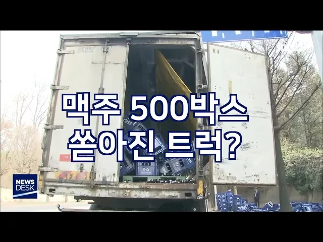 오늘(6) 낮 1시 30분쯤, 광주시 북구 매곡동 한국도로공사 호남본부 앞 도로에서 26.5톤 트럭에 실려 가던 맥주 500여 박스가 도로 2,3차로 위에 쏟아졌습니다. 이 사고로 인명이나 차량 피해는 없었지만 일대 교통이 1시간 30분 정도 통제됐습니다. 경찰은 우회전 하던 트럭이 무게중심을 잃어 맥주병이 쏟아진 것으로 보...