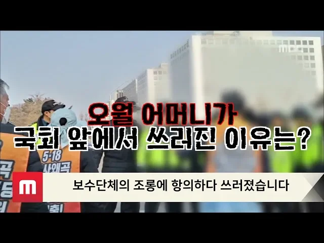5.18 망언을 규탄하기 위해 국회 앞에서 농성 중인 오월 어머니 한 명이 보수단체의 조롱에 항의하다 쓰러졌습니다. 민주당 송갑석 의원에 따르면 지난 4일 국회 앞 농성장에서 5.18 사진을 조롱하는 보수단체 회원들과 오월 어머니들 사이에 실랑이가 벌어졌고 이 과정에서 오월 어미니 회원인 이모씨가 쓰러져 응급실에서...