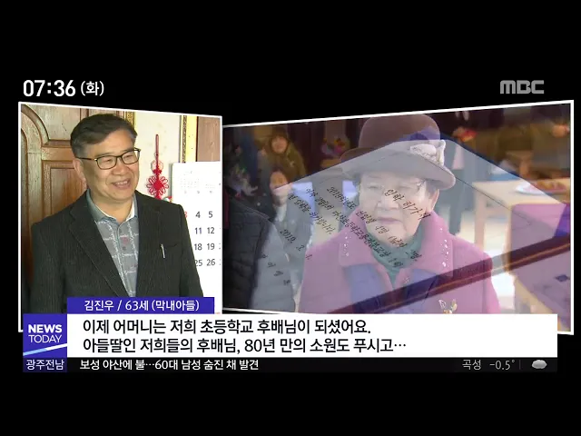 ◀ANC▶ 구순을 앞둔 88살 할머니가 자녀들이 졸업한 시골의 한 초등학교에 입학했습니다. 거리에 있는 간판을 큰 소리로 읽고 싶다는 할머니는 당당하게 배움의 각오를 밝혔습니다. 장용기 기자가 만났습니다. ◀VCR▶ 전남 해남에 살고있는 마정순 할머니. 여든여덟, 미수인 할머니 얼굴엔 설레임과 기대가 가득차 있습...
