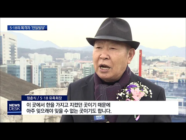 (앵커) 5.18 진상규명특별법 제정, 그리고 전두환씨 형사재판... 이런 일들이 가능했던 건 전일빌딩에서 발견된 헬기 총탄 흔적 때문이었습니다. 5.18 역사의 증언자 역할을 한 이 전일빌딩이 오늘부터 시작되는 리모델링 공사를 통해 역사문화공간으로 재탄생합니다. 보도에 정용욱 기자입니다. (기자) 금남로 1가 1번지의...