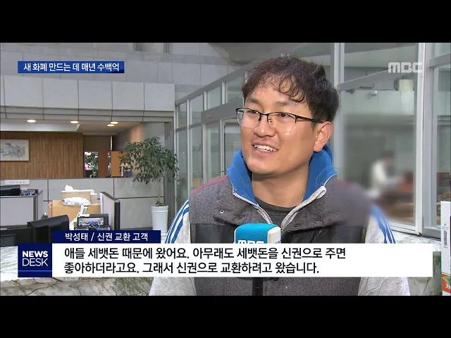 ◀ANC▶ 설 명절이 다가오면서 은행 창구는 신권을 찾는 고객들로 붐비고 있습니다. 기왕이면 새 돈으로 마음을 전하려는 거지만, 해마다 화폐를 새로 만드는 데 수백 억원의 세금이 드는 만큼 이제는 변화도 필요해보입니다. 김진선 기자가 보도합니다. ◀END▶ ◀VCR▶ 평소 한산한 화폐교환창구가 평일 오전부터 북적...