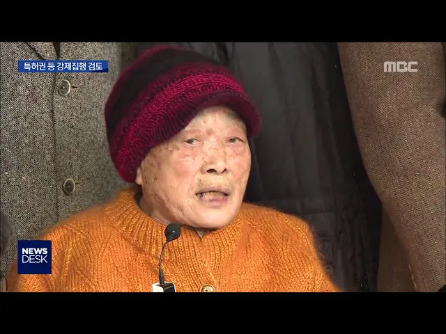 (앵커) 근로정신대 할머니들이 소송에서 이겼지만 미쓰비시는 손해를 배상할 뜻이 없어 보입니다. 국내에 남아있는 재산이 없어서 강제집행도 어려웠는데 변호인단이 다른 방법을 찾아냈습니다. 특허권 같은 무형의 자산에 강제집행을 신청하는 방안을 검토하고 있습니다. 보도에 송정근 기자입니다. (기자) 근로정신대 할...