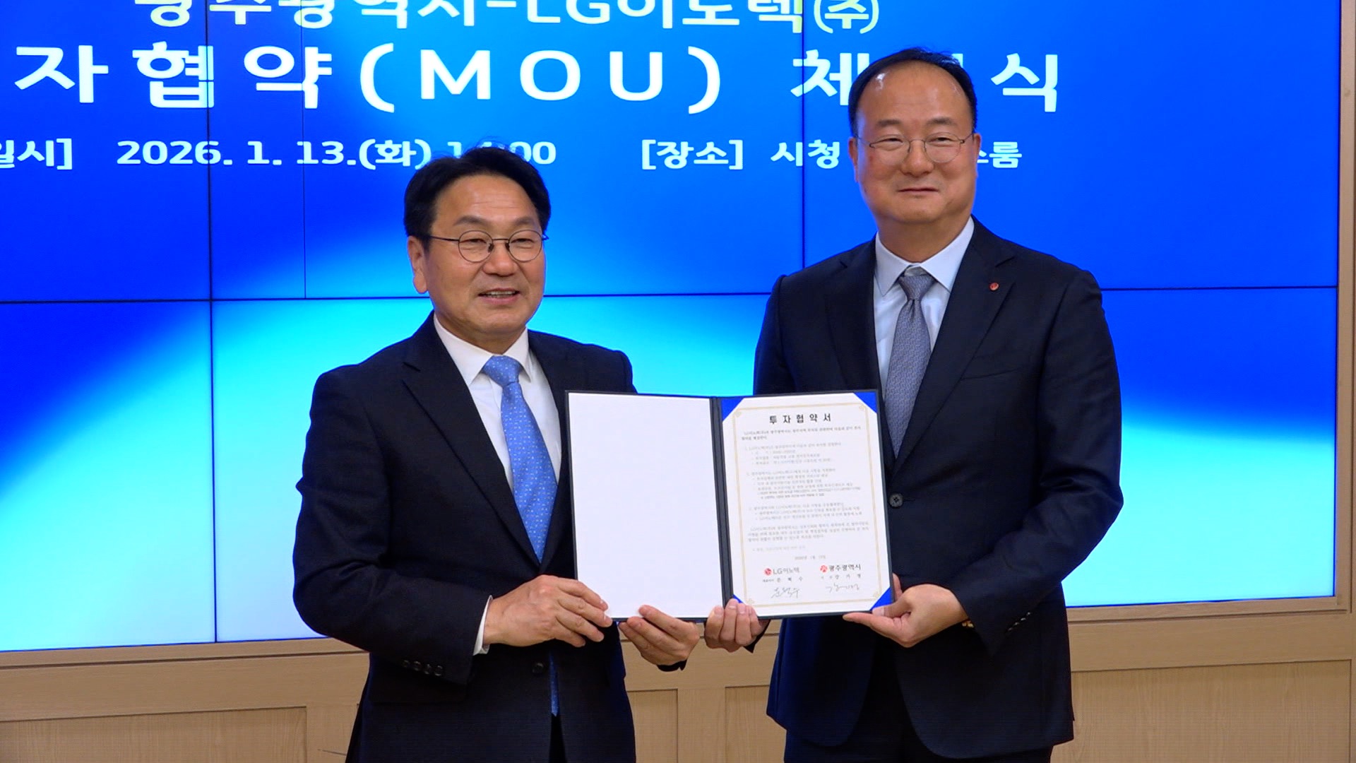 광주시와 LG이노텍이 1천억원 규모의 투자협약을 체결했습니다.이에 따라 LG이노텍은올해부터 2028년까지 광주사업장에 차량용 제어모듈 신규 생산라인을 구축합니다.차량용 제어모듈은 컴퓨터의 CPU처럼 차량의 두뇌 역할을 담당하는 핵심 부품이며자율주행과 전기차 확산에 따라수요가 빠르게 증가하고 있는 만큼지역 산...