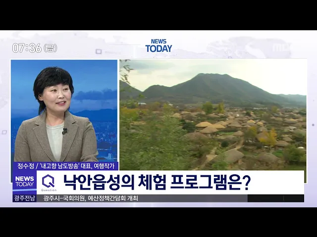 (앵커) 잠깐 가을이 왔나 싶더니 얼굴에 닿는 바람이 제법 찹니다. 가을의 끝자락이 아닐까 싶은데요. 주말동안 가볼만한 곳을 소개하는금요일 이슈인 투데이, 오늘은 가을의 끝자락을 즐기러순천 낙안으로 가봅니다. 정수정 작가 나와있습니다. 안녕하세요! (예, 안녕하세요) ===========================================...