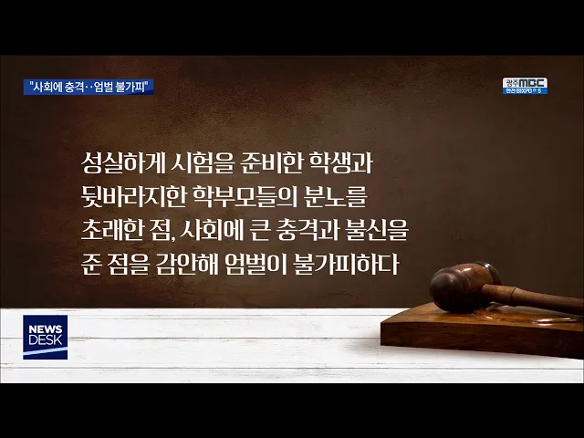 (앵커) 지난 여름 지역 사회를 떠들썩하게 했던 고등학교 시험지 유출 사건의 당사자들이 1심 재판에서 징역 2년씩을 선고받았습니다. 판사는 "엄벌이 불가피하다"고 밝혔는데요. 법정의 분위기는 어땠는지 김철원 기자가 전해드립니다. (기자) (일러스트)판사가 "징역 2년을 선고한다"고 말하는 순간 법정에 나란히 서 있...