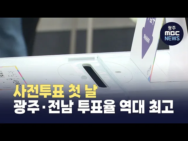 (앵커)사전투표한 분들 많으시죠..제 21대 대통령 선거 사전투표 첫 날, 광주*전남 지역은 역대 최고 투표율을 기록했습니다.각 정당들은 지역민들 표심 잡기에 열을 올렸고, 유권자들은 소중한 한표를 행사했습니다.보도에 김영창 기자입니다.(기자)사전투표 첫 날, 각 정당들은 호남 표심 잡기에 열을 올렸습니다.더불어...