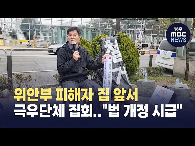 (앵커)최근 일본군 위안부 피해자를 향한 극우 단체의 모욕과 역사 왜곡의 수위가 도를 넘고 있습니다.위안부 피해자의 집 앞까지 찾아가 모욕적인 발언을 쏟아내고 있는데요.위안부 피해자에 대한 모욕을 처벌하기 위한 법 개정이 시급하다는 목소리가 커지고 있습니다.포항문화방송 박성아 기자의 보도입니다.(기자)포항...