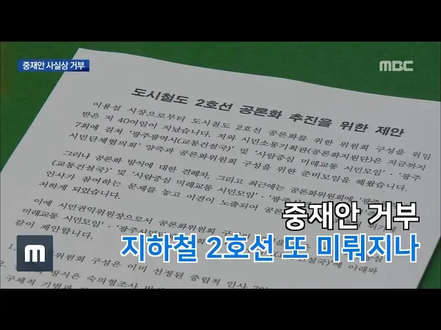 오늘의 주요뉴스... 광주 도시철도 2호선 공론화 문제가 다시 교착 상태에 빠졌습니다. 시민권익위가 제안한 최종 중재안을 시민단체가 사실상 거부했습니다. ------------------------------------------- 5.18이 폭동이었다고 회고록에서 주장한 전두환에 대해, 법원이 역사를 왜곡했다며 5.18 당사자들에게 배상하라고 ...
