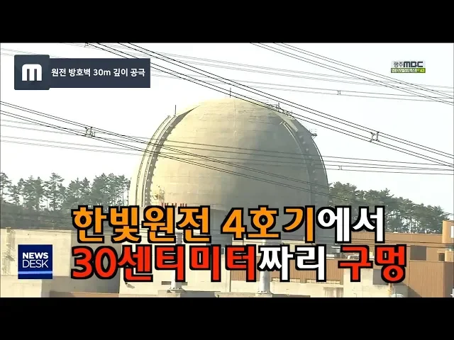 (앵커) 한빛원전 4호기는 지난해 원자로 격납건물에 크고 작은 구멍들이 발견돼 가동 중단이 길어지고 있죠. 민관합동조사단이 최근 4호기를 추가로 조사해봤는데 14개의 구멍이 또 발견됐습니다. 그 중에는 깊이가 30센티미터에 달하는 큰 것도 있습니다. 남궁 욱 기자가 보도합니다. (기자) 한빛원전 4호기는 지난해 5월...