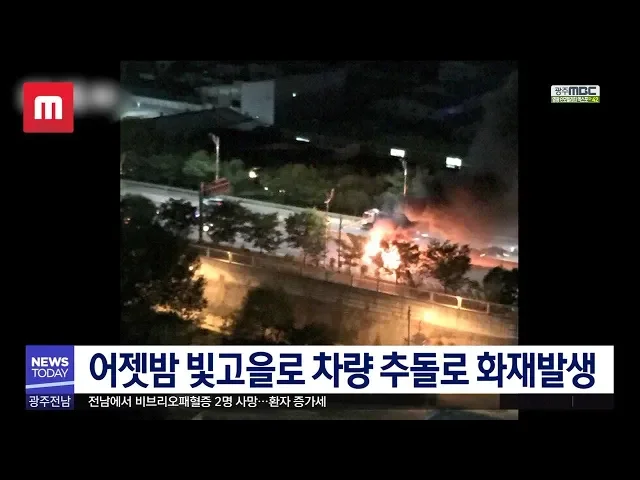 어젯밤 빛고을로 차량 추돌로 화재발생