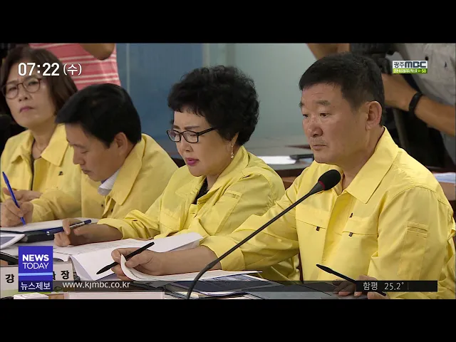 오늘의 주요뉴스... 태풍 솔릭이 오늘 밤부터 전남에 영향을 미칠 것으로 보입니다. 서남해안 어민들은 어선을 긴급 대피시키는 등 대비에 나섰습니다. ------------------------------------------ 농민들은 태풍으로부터 쌀 한 톨이라도 지키기 위해 수확을 서두르고 있습니다. ----------------------------------------...